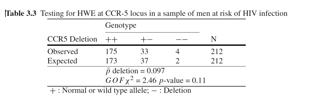 With large samples, we can test for HWE using a chi-squared goodness-of-fit test.