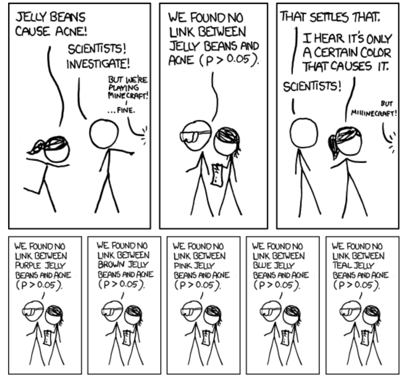 \(\alpha = .05 \implies\) “An estimated 5% of all the tests performed are false discoveries”